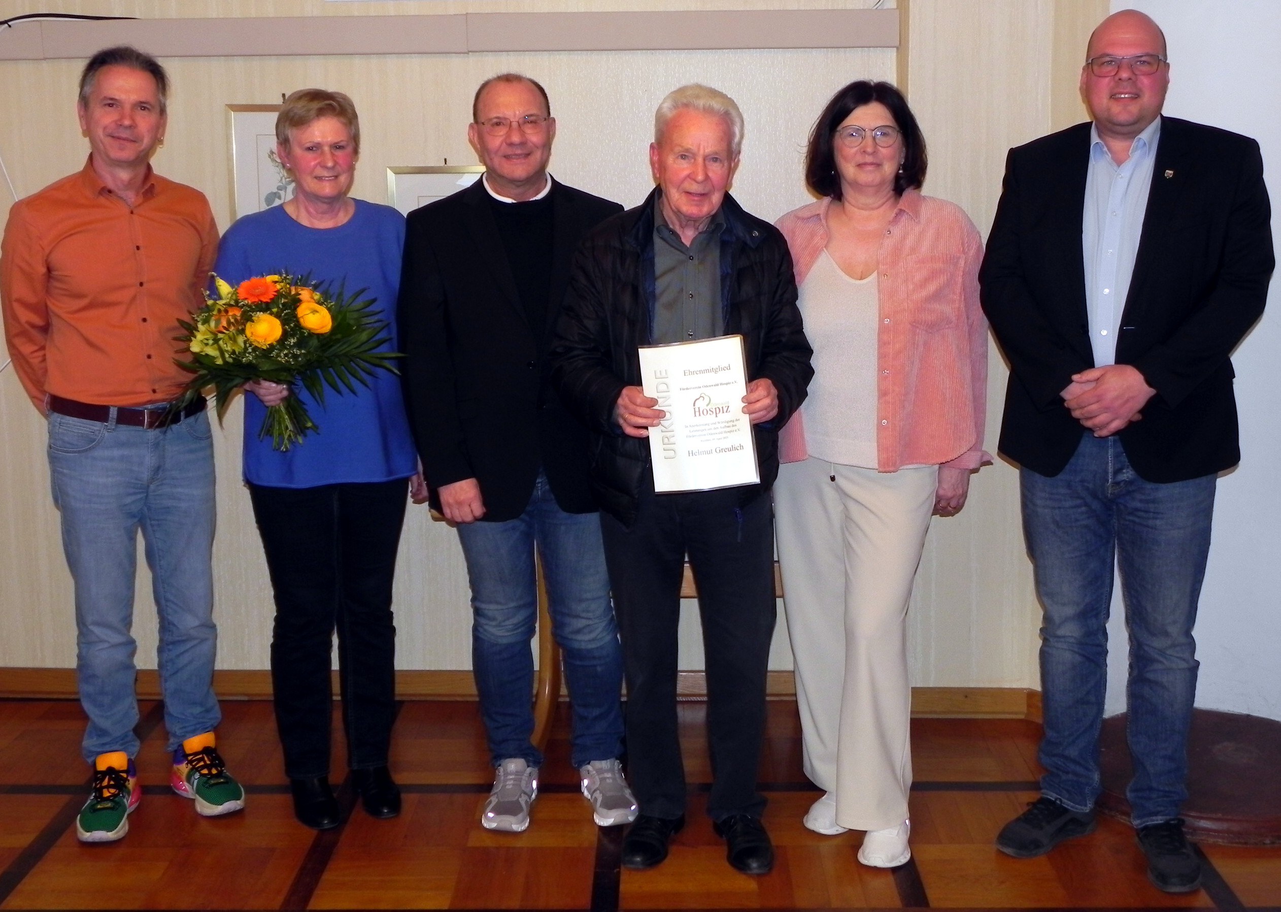 Besondere Ehrungen sprachen die Mitglieder Helmut Greulich und Heinrich Hennig aus: Beide wurden einstimmig zu Ehrenmitgliedern ernannt. Greulich war langjähriger Vorsitzender und maßgeblich am Aufbau des Odenwald-Hospizes beteiligt, während Hennig durch sein politisches und gesellschaftliches Netzwerk viele Impulse setzte. Aus gesundheitlichen Gründen konnte er nicht an der Versammlung teilnehmen.