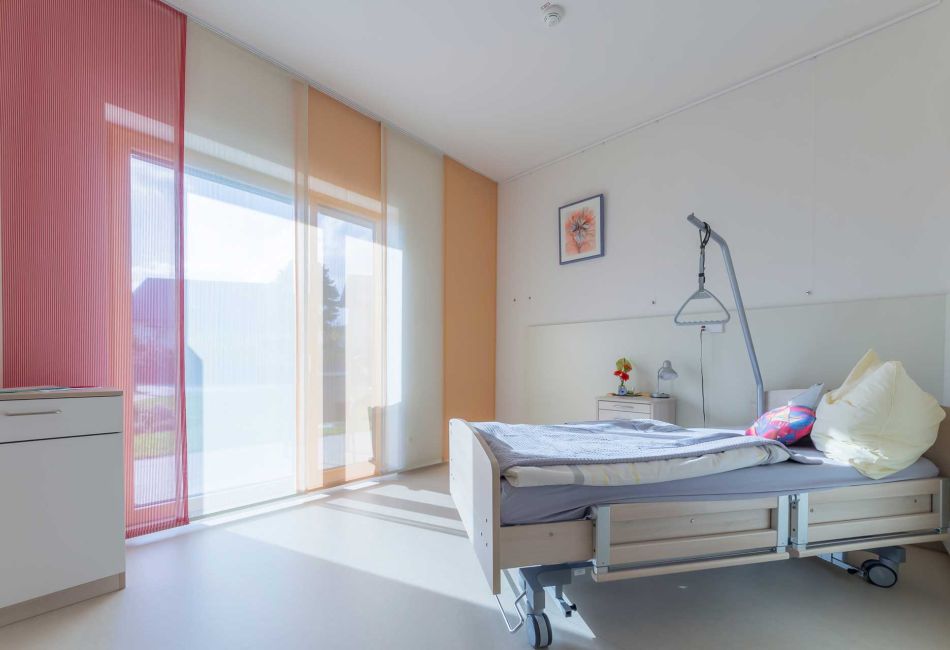 Unser Hospiz bietet in einer warmen und persönlichen Atmosphäre, Platz für zehn Gäste. Jedem steht ein wohnlich eingerichtetes Einzelzimmer mit TV und kostenlosem WLAN zu Verfügung. Gerne kann das Zimmer persönlich gestaltet werden, um sich in seiner letzten Lebensphase wohlzufühlen. Zudem können liebgewonnene Haustiere nach Absprache, gerne zu Besuch mitgebracht werden.