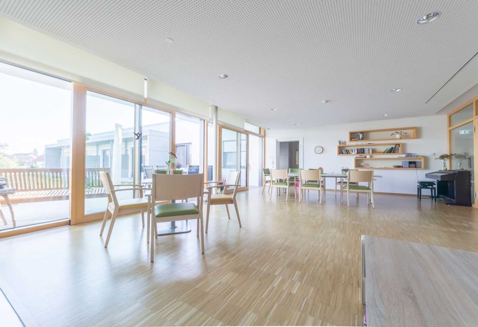 Das Haus bietet in einer warmen und persönlichen Atmosphäre Platz für zehn Gäste. Jedem steht ein wohnlich eingerichtetes Einzelzimmer mit TV und kostenlosem WLAN zur Verfügung, das mit persönlichen Dingen ausgestattet werden kann. Dort können auch Angehörige in einem Zustellbett mit übernachten. Außerdem steht im Haus ein separates Übernachtungszimmer für Angehörige bereit.